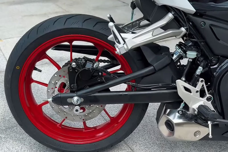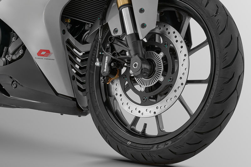 Cả 2 bánh của QJMotor Sai 250 Mini 2026 đều dùng thắng đĩa kép, tích hợp hệ thống chống bó cứng phanh (ABS), kiểm soát lực kéo (TCS), lốp không săm hiệu suất cao CST nhằm đảm bảo an toàn tối đa khi di chuyển trong thành phố hay trên đường đèo.