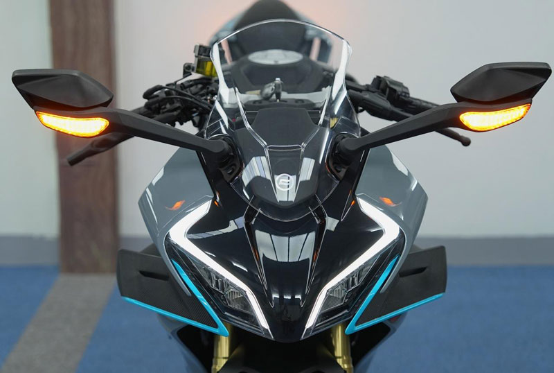 Phần đáng nói nhất chính là trái tim của xe – khối động cơ 449,5cc 2 xi lanh, làm mát bằng dung dịch, được trang bị cả turbo tăng áp. Kết hợp với hộp số 6 cấp và ly hợp chống trượt, CFMoto 450SR S sản sinh khoảng 43 mã lực, cho khả năng tăng tốc cực nhanh và ổn định trong mọi điều kiện. Việc trang bị turbo không chỉ giúp xe “bốc” hơn mà còn tăng mô-men xoắn, giúp xe bứt phá cực mạnh nhưng vẫn mượt mà khi vào cua.