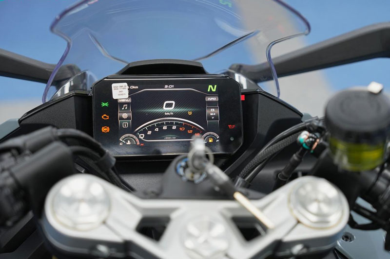 Nói đến công nghệ thì CFMoto 450SR S cũng chẳng hề kém cạnh ai. Xe được trang bị bảng đồng hồ LCD full color hiển thị đủ thứ thông tin cần thiết từ tốc độ, vòng tua đến mức nhiên liệu – cực kỳ tiện lợi mà vẫn dễ nhìn. Hệ thống chiếu sáng thông minh thích ứng theo môi trường xung quanh giúp việc lái xe vào ban đêm an toàn và phong cách hơn bao giờ hết. Nhìn chung, chiếc xe này sinh ra không chỉ để đi, mà còn để “show”.
