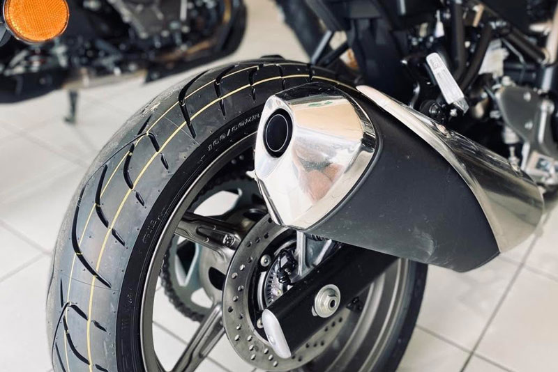 Bộ bánh 17 inch trước sau sử dụng lốp trước 120/70 và lốp sau 160/70, mang đến khả năng bám đường ổn định. Xe có trọng lượng 197 kg, đi kèm bình xăng dung tích 14 lít, phù hợp cho cả việc đi phố lẫn phượt xa. Chiều cao yên chỉ 785 mm cũng là một điểm cộng cực lớn, giúp những tay lái có vóc dáng nhỏ nhắn vẫn dễ dàng làm chủ chiếc xe.