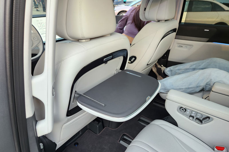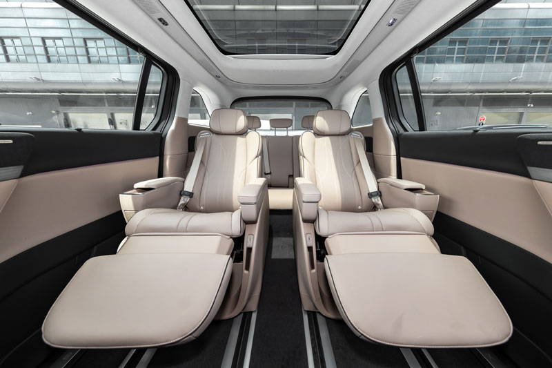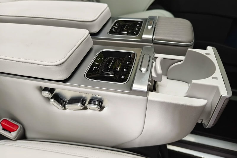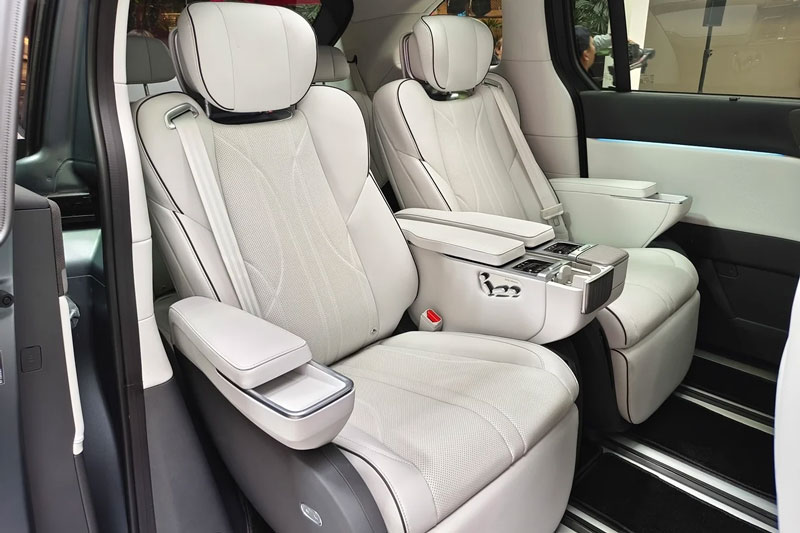 Hàng ghế thứ hai có thể chỉnh điện 18 hướng, trong khi hàng ghế thứ ba gập phẳng bằng điện, mở rộng không gian chứa đồ từ 755 lít lên đến 2.554 lít. Nội thất được trang bị hàng loạt tiện nghi cao cấp như màn hình kỹ thuật số 10,25 inch, màn hình giải trí trung tâm 17,3 inch sử dụng chip Qualcomm Snapdragon 8295, hệ thống âm thanh Xopera 23 loa, tủ lạnh có khả năng sưởi và làm mát từ 0 đến 50°C, cùng màn hình gắn trần 21,4 inch phục vụ nhu cầu giải trí cho hàng ghế sau.