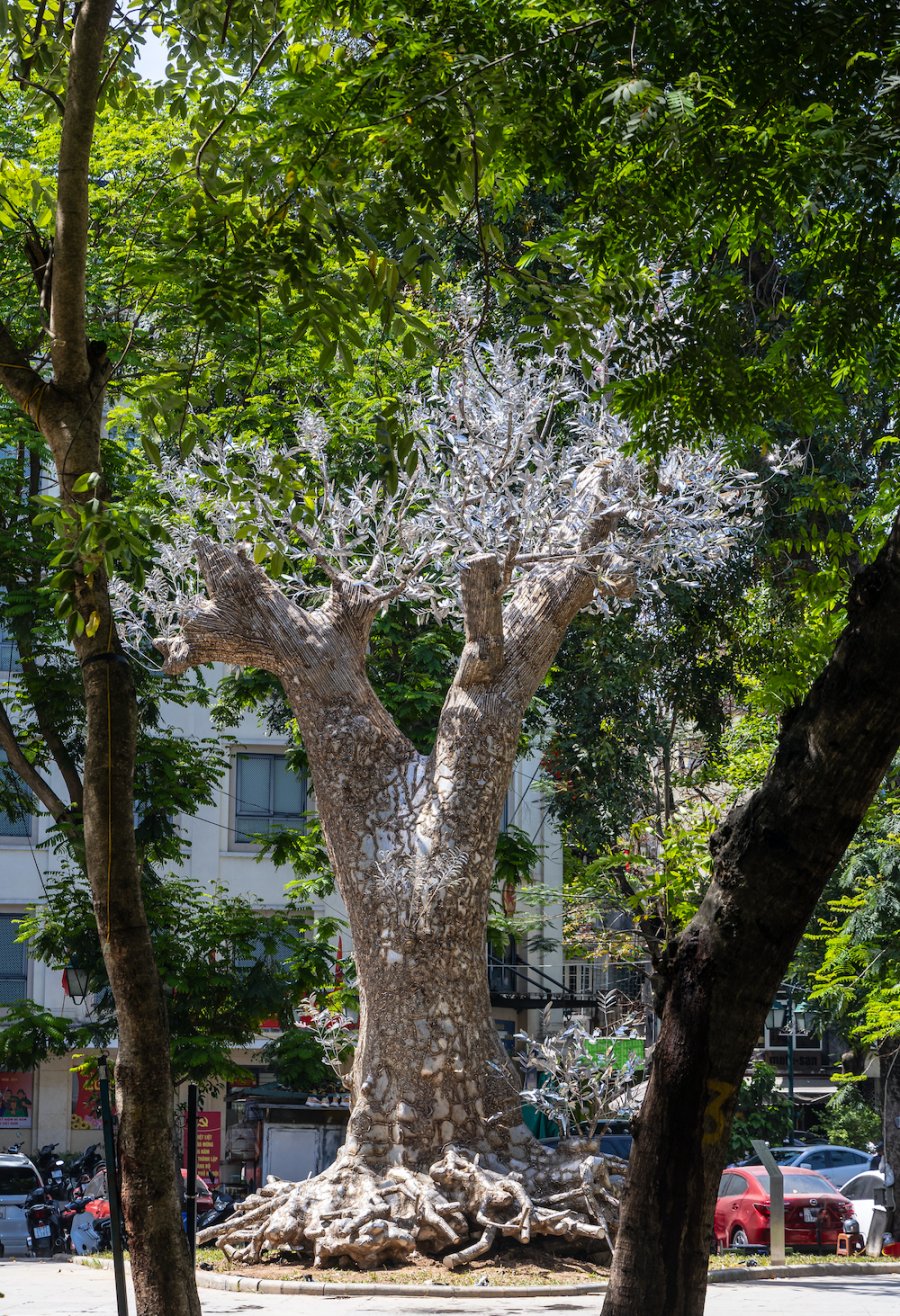 Chiều 22/4, dự án nghệ thuật công cộng “Hồi sinh” đã chính thức được khánh thành tại vườn hoa Cổ Tân, quận Hoàn Kiếm, Hà Nội. Tác phẩm là một sắp đặt ngoài trời quy mô lớn do nghệ sĩ Tia - Thủy Nguyễn thực hiện từ phần còn lại của một cây xà cừ 70 năm tuổi từng bị bật gốc sau cơn bão Yagi.