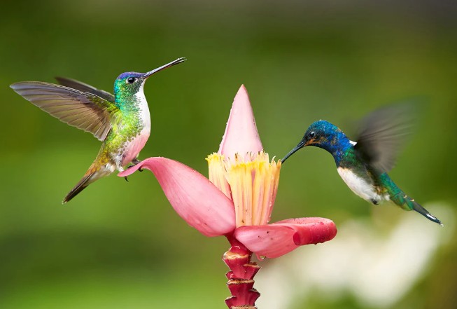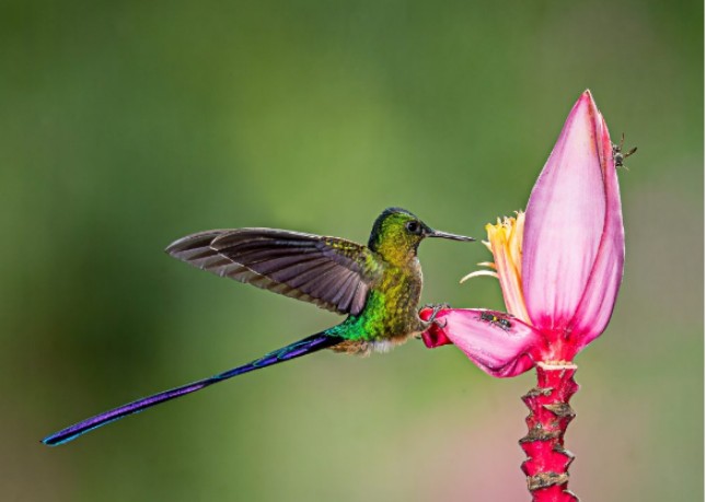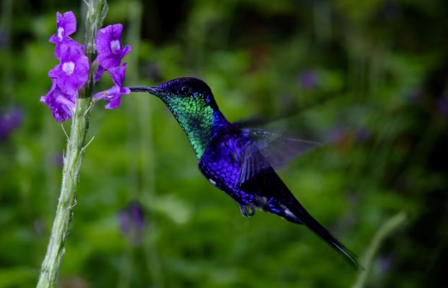 Đó chính là chim ruồi, loài chim được mệnh danh là viên ngọc sống của bầu trời. Không chỉ nổi bật bởi bộ lông óng ánh, sặc sỡ bậc nhất trong thế giới loài chim, chim ruồi còn là “vận động viên nhào lộn” siêu hạng. Với đôi cánh đập từ 20 đến 80 lần mỗi giây, tốc độ bay của chúng được ví như những chiếc máy bay phản lực thu nhỏ.