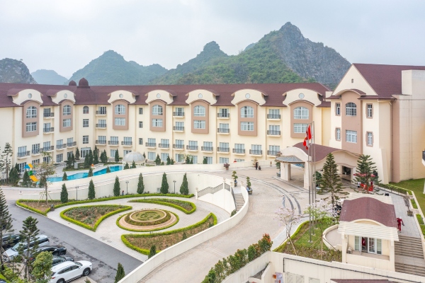 Khách sạn Legend Valley như một tòa lâu đài cổ tích giữa núi non hùng vĩ.
