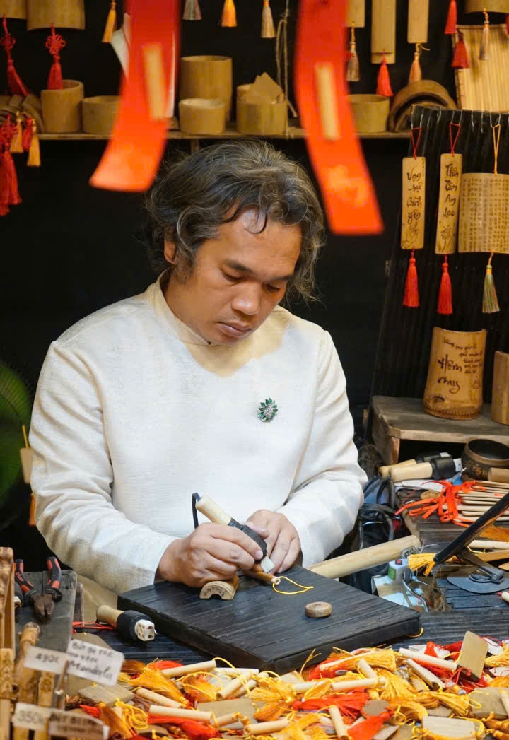 Để tạo tác nên một cây bút, anh phải lựa tre thật kỹ, xử lý nguyên liệu, cắt gọt, mài dũa, tạo hình, sau đó mới đến công đoạn khắc, vốn là phần khó nhất. Chỉ cần một lỗi nhỏ, một nét sai, toàn bộ phải làm lại từ đầu vì rất khó tẩy, mà nếu có tẩy được thì cũng không còn nguyên vẹn năng lượng. Chính vì thế, mỗi cây bút ra đời đều là một tác phẩm độc bản, kết tinh của sự tỉ mỉ, kiên nhẫn và một tâm thế thiền định.