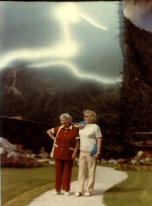 Tại Thung lũng Three Gap, Canada năm 1980, hai chị em chụp ảnh lưu niệm. Tuy nhiên, phía sau họ, dãy núi bị “cắt phăng” một cách khó hiểu và những dải sáng như “lửa trời” lơ lửng trên không trung – dù máy ảnh Balda lúc đó thuộc loại hiện đại nhất, hoàn toàn không thể bị nhiễu hình.