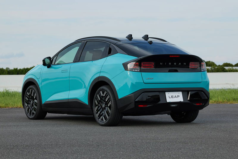 Nissan Leaf thế hệ mới được phát triển trên nền tảng CMF-EV với thân xe crossover fastback mang dáng vẻ thể thao và hiện đại. Thiết kế khí động học được tối ưu với hệ số cản gió chỉ 0,26 Cd giúp tăng hiệu quả vận hành. Phần đầu xe nổi bật với cụm đèn pha LED One-Line Accent Light gồm sáu ô sáng đặc trưng, nối liền bằng dải đèn trung tâm, tạo diện mạo nhận diện đặc trưng cho mẫu xe điện mới của Nissan.