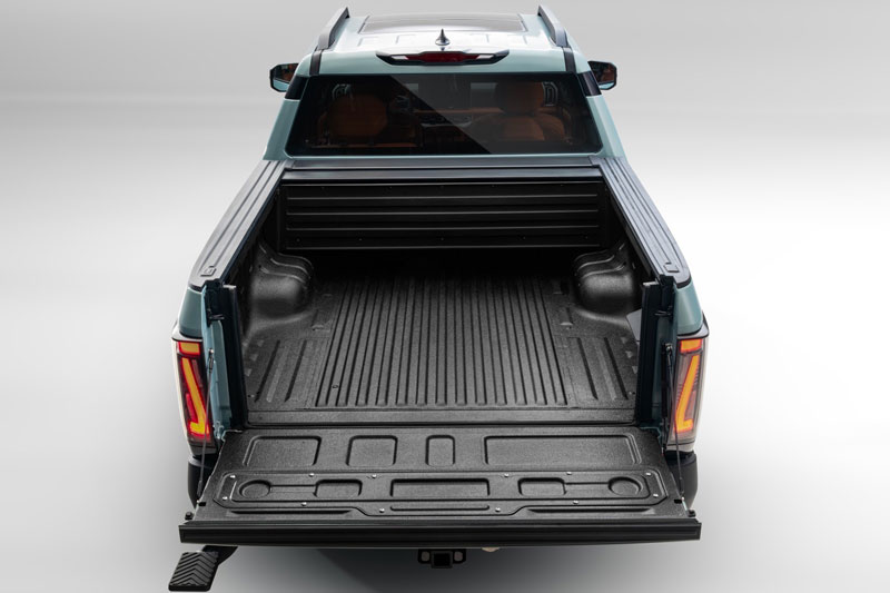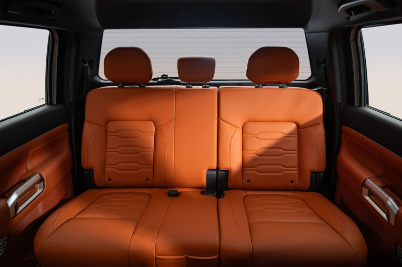 Kích thước tổng thể của Nissan Z9 GE PHEV thật sự ấn tượng với chiều dài 5.494 mm, rộng 1.960 mm và cao 1.950 mm, chiều dài cơ sở lên tới 3.300 mm. Thùng xe cũng rộng rãi với kích thước 1.520 x 1.600 x 490 mm, trọng tải tối đa 490 kg, đảm bảo khả năng chuyên chở linh hoạt. Thân xe được thiết kế hai ngăn, kèm theo chắn bùn trước sau mở rộng, viền bánh xe màu đen và bộ mâm sáu chấu đen cực chất, đúng gu bán tải GenZ.