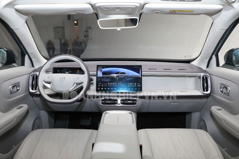 Bước vào khoang lái, Leapmotor B10 tiếp tục gây ấn tượng với màn hình trung tâm treo 14,6 inch kết hợp với cụm đồng hồ kỹ thuật số 8,8 inch. Vô lăng hai chấu hình chữ D tích hợp cần số ngay phía sau, giúp tối ưu không gian và tăng tính tiện dụng. Đặc biệt, xe có hai tấm sạc không dây ở khu vực trung tâm cùng các điểm neo đặc biệt phía hành khách, cho phép lắp đặt bàn gấp - một chi tiết cực kỳ hữu ích cho những chuyến đi xa.
