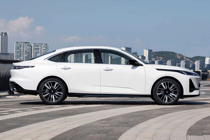 Nhìn từ bên hông, Changan Eado 2026 duy trì kiểu dáng sedan ba khoang truyền thống, song được làm mới bằng đường gân dập nổi, viền cửa mạ crôm bạc và bộ mâm hợp kim 18 inch. Kích thước tổng thể lần lượt là 4.785x1.840x1.440 mm, chiều dài cơ sở 2.765 mm, tăng thêm 15 mm so với đời cũ.