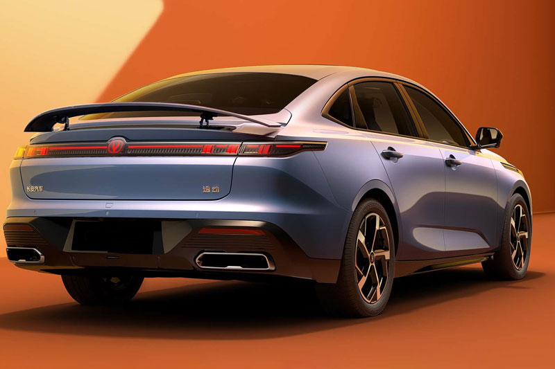 Ở phía sau, Changan Eado 2026 được trang bị cánh gió điện ba chế độ, cụm đèn hậu thấu kính tích hợp logo, phản chiếu ánh sáng LED phía trước. Cản sau dạng xếp lớp cùng cụm ống xả hình chữ nhật hai bên làm nổi bật phong cách thể thao.
