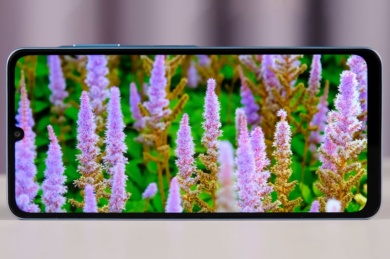 Galaxy A06 5G sở hữu tấm nền màn hình LCD PLS kích thước 6,7 inch với độ phân giải 720 x 1.600 pixel (tỷ lệ 20:9). So với phiên bản A06 4G, mẫu 5G được nâng cấp tốc độ làm tươi lên 90Hz, mang lại trải nghiệm vuốt chạm mượt mà hơn. Một điểm mới đáng chú ý trên phiên bản này là cảm biến vân tay được tích hợp bên cạnh hông máy, giúp mở khóa nhanh chóng và tiện lợi.