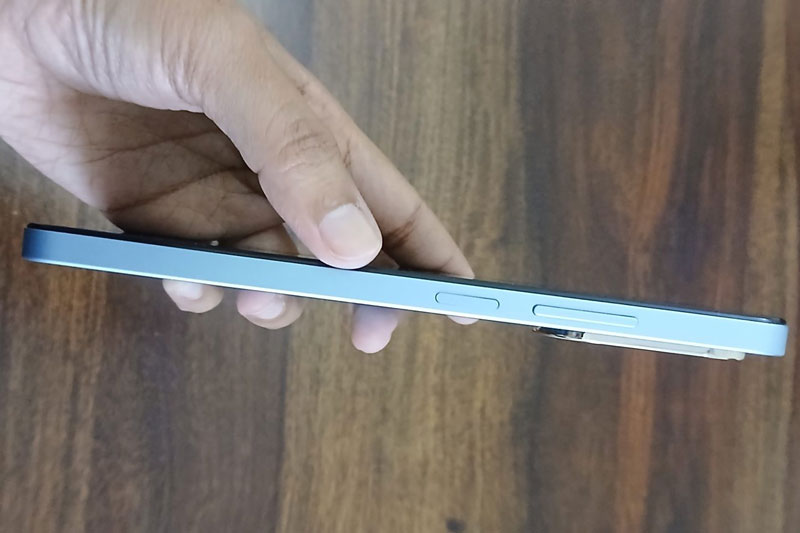 Kích thước của Xiaomi Poco C71 lần lượt là 171,9x77,8x 8,26mm, trọng lượng 193g. Cảm biến vân tay tích hợp nơi nút nguồn bên cạnh phải. Smartphone giá rẻ này đạt chuẩn kháng bụi, nước IP52.