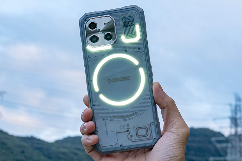 Doogee Blade GT Ultra có kích thước 178,5 x 83,5 x 10,5 mm, cân nặng 260 g, mang đến cảm giác cầm nắm chắc chắn và bền bỉ. Điểm nổi bật của thiết bị này chính là mặt lưng trong suốt kết hợp với hệ thống đèn LED độc đáo, tạo điểm nhấn ấn tượng về mặt thẩm mỹ.Blade GT Ultra đạt chuẩn kháng bụi, nước theo tiêu chuẩn IP68/IP69K cũng như tiêu chuẩn độ bền quân sự Mỹ MIL-STD-810H.