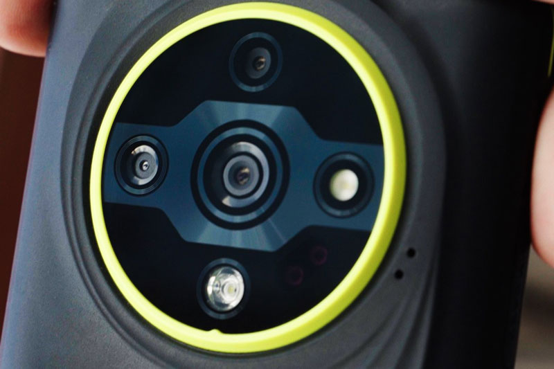 Mặt lưng của Armor X31 Pro được thiết kế dạng phẳng với viền bo cong, tạo cảm giác cầm nắm chắc chắn. Cụm camera sau được tạo hình tròn, lấy cảm hứng từ la bàn, bao quanh bởi đường viền đậm màu giúp thiết bị trông cá tính và năng động hơn.