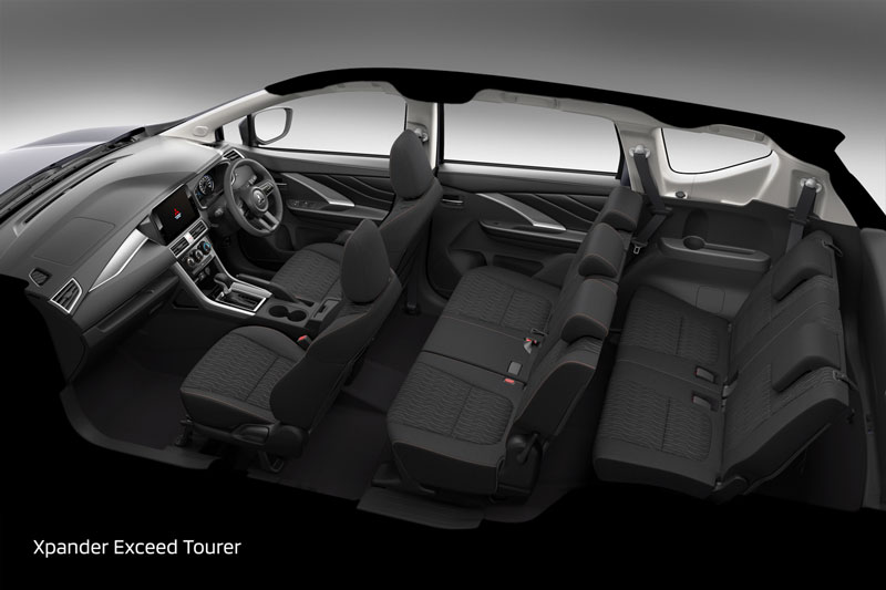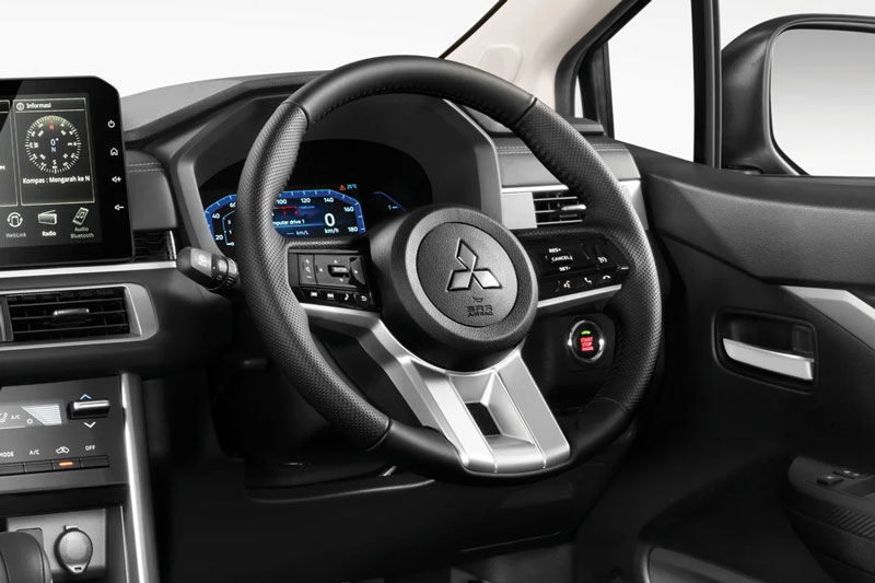 Bên trong cabin, toàn bộ không gian nội thất đều chuyển sang tông màu đen hiện đại, trong đó Xpander Cross được phối thêm viền gỗ giả và màu đỏ tía nổi bật, tăng thêm phần cao cấp. Vô-lăng ba chấu thiết kế mới lấy cảm hứng từ mẫu bán tải Triton thế hệ mới, kết hợp cùng cụm đồng hồ kỹ thuật số 8 inch giúp nâng cao trải nghiệm điều khiển. Màn hình giải trí trung tâm cũng được nâng cấp lên kích thước 10 inch, đi kèm các nút điều khiển cảm ứng điện dung bố trí lệch trái, tối ưu cho thao tác của người lái.