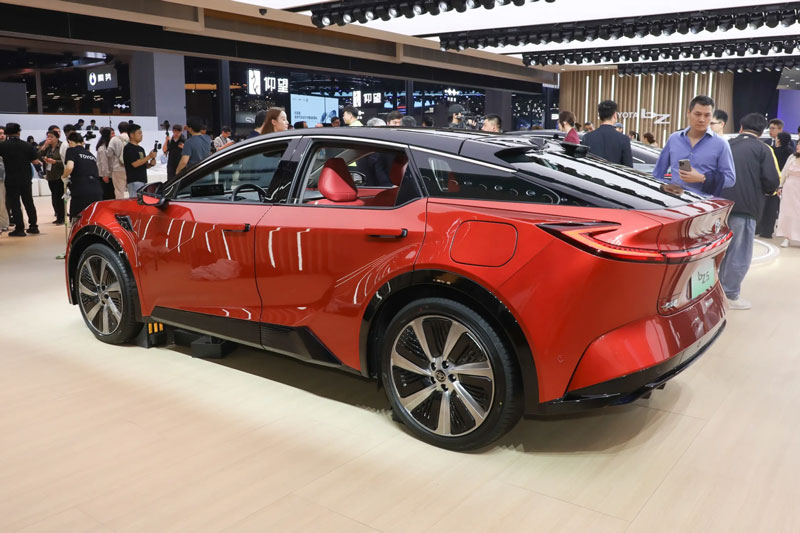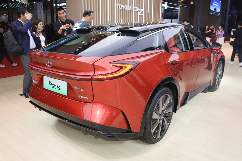 Form xe dạng SUV coupe với phần đuôi fastback khiến xe trông vừa thể thao vừa mềm mại. Mâm xe 7 chấu giữ nguyên thiết kế đặc trưng từ bZ3C, và logo phía sau đã được thay thành bZ5 kèm theo cụm đèn hậu LED kéo dài toàn bộ chiều ngang tạo sự đồng bộ với phần đầu xe và tăng thêm độ nhận diện. Kích thước củaToyota bZ5 lần lượt là 4.780x1.866x1.510 mm, chiều dài cơ sở 2.880 mm.