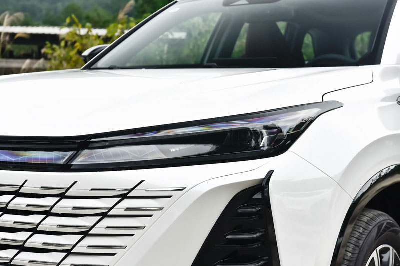 Về ngoại thất, Changan CS75 Plus Smart Champion Edition mang diện mạo mạnh mẽ, đậm chất thể thao với cụm đèn LED ban ngày dạng thấu kính, đèn pha ba tầng và lưới tản nhiệt không khung độc đáo. Phần cản trước được tạo hình góc cạnh với các khe thông gió đa giác, kết hợp cùng khe tản nhiệt hình thang phía dưới, mang lại hiệu ứng thị giác năng động và hiện đại.