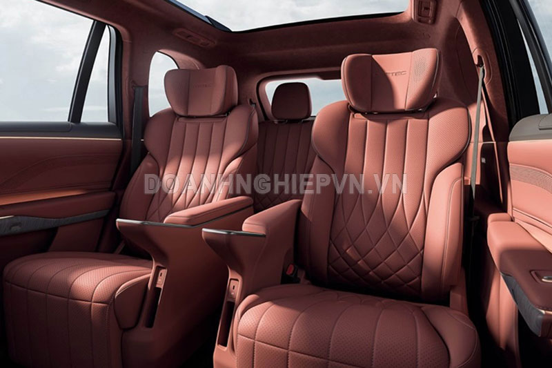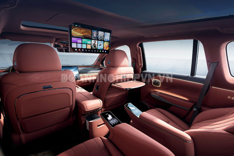 Chưa hết, hành khách phía sau còn được chiều chuộng với màn hình trần độ phân giải 3K với kích cỡ 17,3 inch, tủ lạnh mini và hệ thống âm thanh cực đỉnh gồm 24 loa, đi kèm hơn 60 vật liệu cách âm và kính cách âm, đảm bảo trải nghiệm yên tĩnh như đang ở phòng thu.