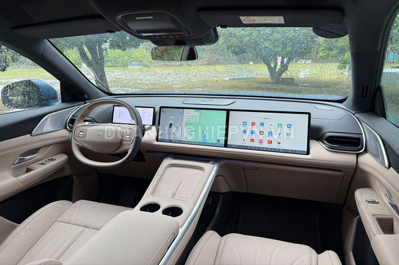 Bước vào khoang cabin, người dùng sẽ ấn tượng bởi ba màn hình lớn gồm bảng đồng hồ kỹ thuật số 10,25 inch và hai màn hình cảm ứng kép 14,96 inch sử dụng chip Qualcomm Snapdragon 8295P, có sức mạnh xử lý gấp 2,5 lần so với thế hệ trước. Xe hỗ trợ mạng 5G, kết nối đa thiết bị và khả năng trình chiếu ứng dụng trên nhiều màn hình.
