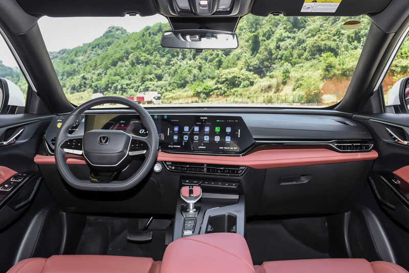 Bước vào khoang cabin, Changan X5 Plus 2026 được trang bị hệ thống 3 màn hình 30 inch liền mạch bao quanh, trong đó màn hình phụ có khả năng hiển thị tùy chỉnh các thông tin quan trọng như áp suất lốp hay tình trạng giải trí theo thời gian thực.