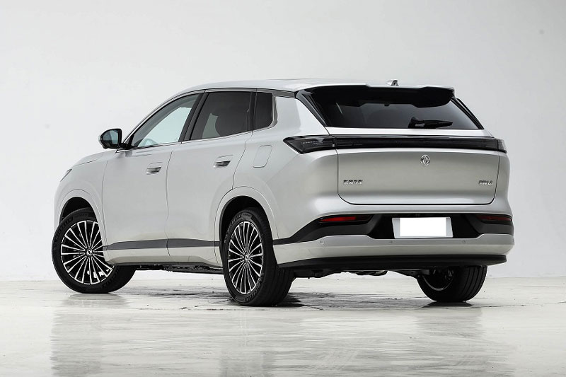 Về thiết kế, Dongfeng Aeolus L8 PHEV 2025 nổi bật với dải đèn chiếu sáng xuyên suốt ở cả phía trước và sau, tay nắm cửa dạng bán ẩn cùng bộ vành đa chấu hiện đại. Kích thước tổng thể của SUV hạng C này lần lượt là 4.762 x 1.910 x 1.677 mm, chiều dài cơ sở đạt 2.825 mm.