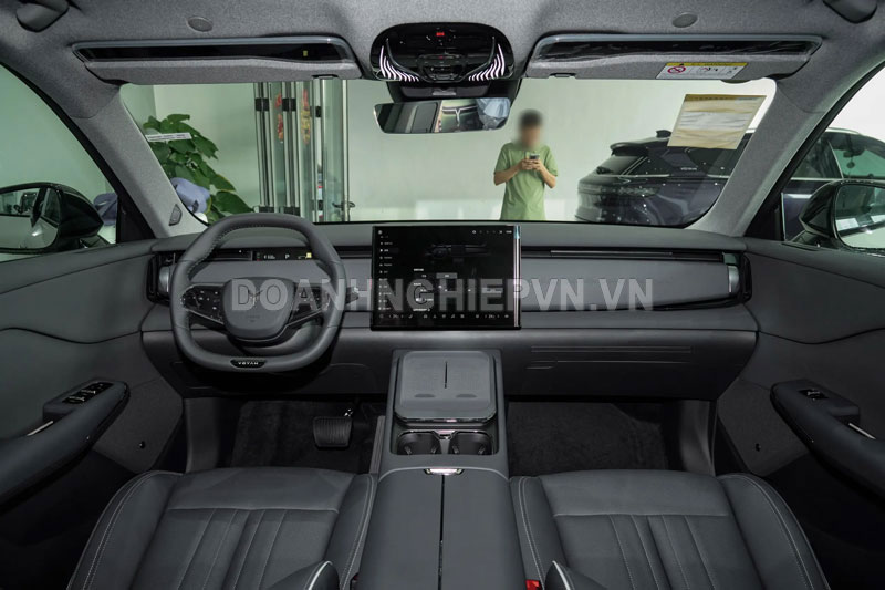 Bên trong khoang lái, Zhiyin theo đuổi phong cách tối giản đậm chất tương lai. Khoang lái được gọi là “Xiaoyao Cockpit”, thiết kế khác biệt so với xu hướng chung khi không sử dụng màn hình siêu to kết nối mà chọn cách hiển thị thông tin qua một màn hình LCD nhỏ trước vô lăng độc đáo, phối cùng HUD dạng AR cực kỳ hiện đại. Điểm khiến ai cũng “mắt chữ O mồm chữ A” chính là màn hình OLED cong 15,05 inch ở trung tâm có thể trượt qua ghế phụ, biến thành màn hình giải trí phụ lái. Dưới bảng điều khiển của ghế phụ còn có một chiếc bàn điện nhỏ, kết hợp cùng ghế không trọng lực – tất cả tạo nên trải nghiệm "ghế nữ hoàng" đúng chuẩn VIP cho người ngồi bên cạnh tài xế.