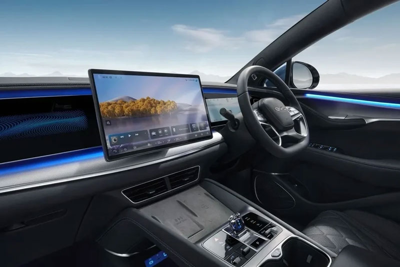 Không gian nội thất của Sealion 7 được trang bị nhiều công nghệ tiên tiến với màn hình cảm ứng xoay cỡ lớn 15,6 inch, cụm đồng hồ kỹ thuật số 10,25 inch và vô lăng đáy phẳng. Xe cũng được tích hợp hàng loạt tiện nghi cao cấp như ghế trước chỉnh điện có chức năng sưởi và thông gió, điều hòa tự động hai vùng, cửa sổ trời toàn cảnh, hệ thống âm thanh 12 loa cao cấp, màn hình hiển thị trên kính chắn gió (HUD) và hệ thống hỗ trợ lái tiên tiến (ADAS).