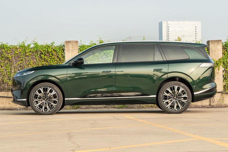 eπ 008 2026 được trang bị mâm hợp kim 21 inch tiêu chuẩn trên toàn bộ các phiên bản, đi kèm gương chiếu hậu gập điện, kính chắn gió riêng tư và thiết kế khí động học tối ưu giúp giảm lực cản gió khi di chuyển ở tốc độ cao. Kích thước tổng thể của eπ 008 đạt 5.002 mm dài, 1.972 mm rộng và 1.732 mm cao, chiều dài cơ sở 3.025 mm, mang lại không gian nội thất rộng rãi và thoải mái đúng chất SUV cao cấp.