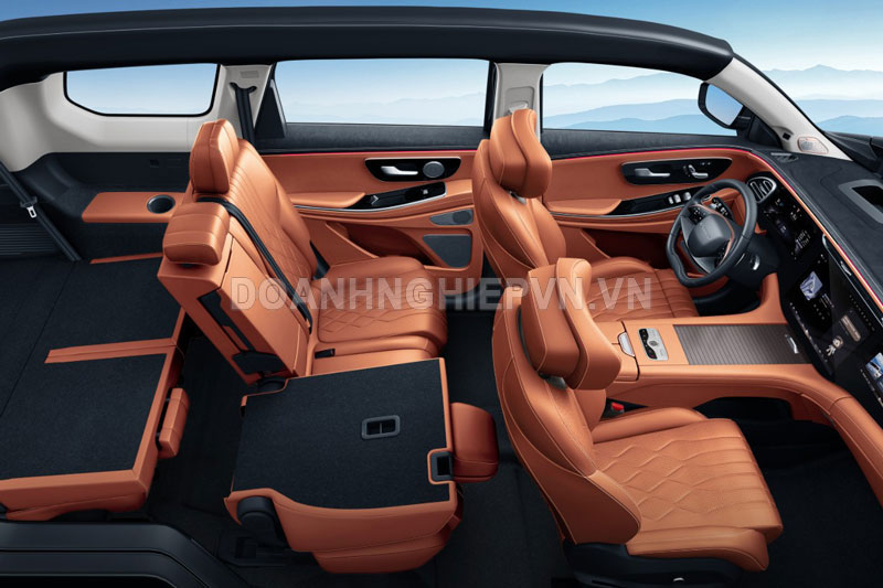 Exeed VX C-DM sở hữu kích thước dài x rộng x cao lần lượt là 5.010 x 1.940 x 1.800 mm, chiều dài cơ sở 2.900 mm. So với bản chạy xăng, xe dài hơn 40 mm và cao hơn 8 mm, giúp không gian bên trong rộng rãi hơn. Xe hỗ trợ hai cấu hình 6 hoặc 7 chỗ ngồi, phù hợp cho gia đình hoặc nhu cầu sử dụng cao cấp.