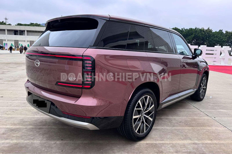 GAC Trumpchi S7 sở hữu kích thước ấn tượng với chiều dài 4.900mm, rộng 1.950mm, cao 1.780mm và chiều dài cơ sở 2.880mm. Điểm nhấn lớn nhất là dải đèn pha LED thông minh dài 2.618mm, tích hợp AI với 2.248 bóng đèn siêu nhỏ. Phía sau, xe sử dụng đèn hậu “Polar Light” cùng với đèn “thở năng lượng” trên trụ D để hiển thị trạng thái sạc.