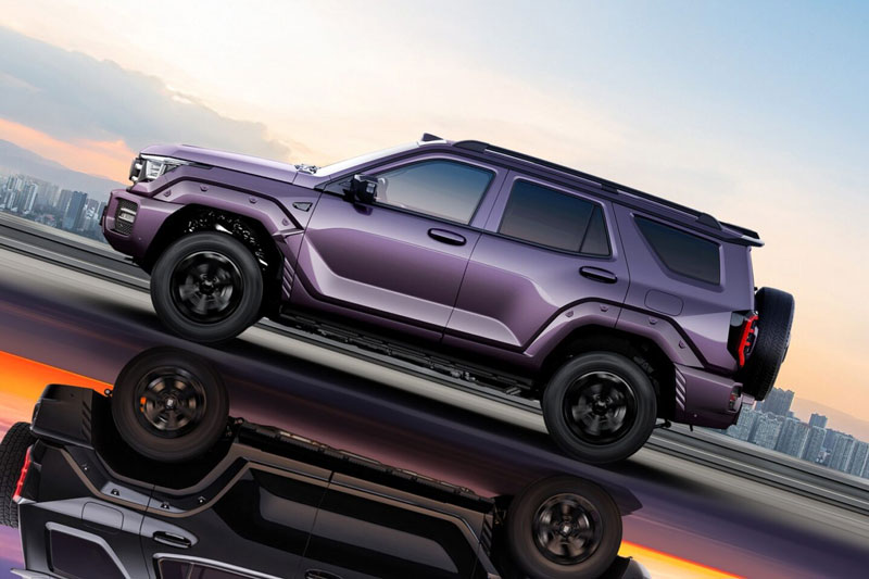 Lưới tản nhiệt phía trước nổi bật với hai thanh crôm nằm ngang kết hợp cùng cụm đèn pha đa giác, cản trước được thiết kế lại với đường nét thẳng mạch lạc hơn. Nhìn từ bên hông, các chi tiết đinh tán đặc trưng quanh vòm bánh xe tiếp tục được giữ lại, trong khi ngoại thất xuất hiện thêm màu sơn mới độc quyền là tím đôn hoàng.