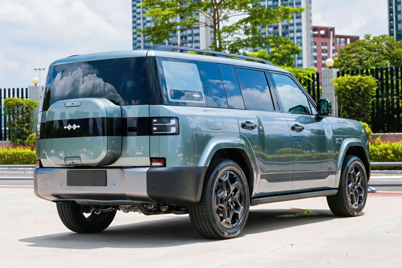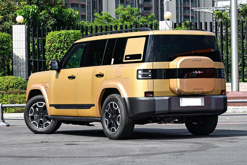 Phần đuôi xe mang dấu ấn riêng với cụm đèn hậu hình chữ nhật bo tròn, kết hợp dải ốp màu đen nối liền hai bên và thiết kế “ba lô” độc đáo, đem lại diện mạo mới lạ trong phân khúc. Fangchengbao Ti7 có kích thước dài 4.999 mm, rộng 1.995 mm, cao 1.865 mm, chiều dài cơ sở đạt 2.920 mm, cùng góc tiếp cận 24 độ và góc thoát 25 độ, cho khả năng vận hành linh hoạt hơn trên nhiều địa hình.