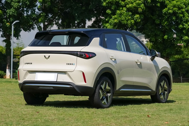 Phần đuôi xe được tạo điểm nhấn bằng cánh gió tích hợp đèn phanh LED, cụm đèn hậu xuyên thấu ba lớp cùng viền bạc trên cản sau, tạo cảm giác liền mạch và hiện đại. Kích thước tổng thể của Wuling Bingo S lần lượt là 4.265x1.785x1.600 mm, chiều dài cơ sở 2.610 mm mang đến tỷ lệ cân đối cho mẫu SUV đô thị này.