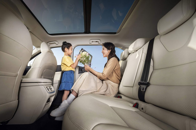 Hàng ghế trước được trang bị đầy đủ tiện nghi với ghế lái chỉnh điện 12 hướng, ghế phụ chỉnh điện 4 hướng. Cả hai ghế trước đều có tính năng thông gió và massage, trong khi tất cả ghế trên xe đều hỗ trợ sưởi. Đặc biệt, ghế sau có thể điều chỉnh độ nghiêng từ 27° đến 32° giúp hành khách thoải mái hơn trên những hành trình dài.