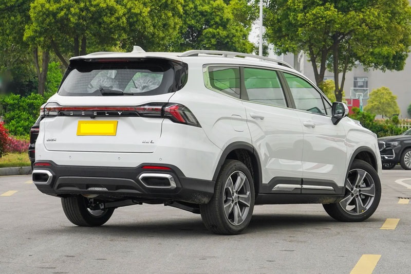 Phần đuôi xe nổi bật với cánh gió trên nóc và cụm đèn hậu màu khói kéo dài xuyên suốt, tạo điểm nhấn ấn tượng khi xe di chuyển trong đêm. Geely Haoyue L 2025 sở hữu chiều dài tổng thể 4.900 mm (phiên bản tiêu chuẩn là 4.860 mm), rộng 1.910 mm, cao 1.770 mm và chiều dài cơ sở lên đến 2.825 mm, đảm bảo không gian bên trong rộng rãi và thoải mái.