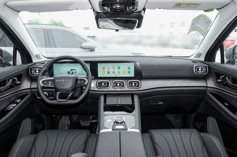 Bên trong, Tiggo 9X sử dụng cụm đồng hồ LCD 10,25 inch kết hợp màn hình trung tâm 15,6 inch. Xe được trang bị chip 8255 (một số bản dùng chip 8155), trợ lý giọng nói AI, kết nối HUAWEI HiCar, CarPlay và CarLink. Ghế trước hỗ trợ sưởi, thông gió và massage 10 điểm, ghế hành khách cỡ Queen tăng sự thoải mái.