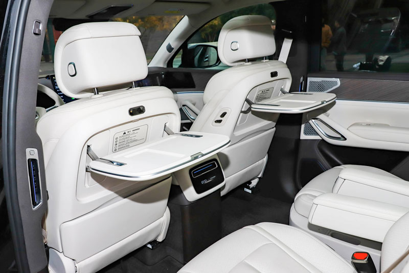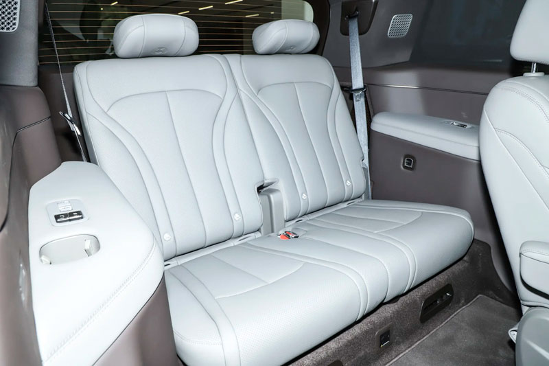 Ghế ngồi được bố trí theo dạng 2+2+2 chỗ ngồi. Ghế lái được thiết kế dạng nữ hoàng không trọng lực, trong khi hàng ghế trước và ghế thứ hai đều hỗ trợ sưởi ấm, thông gió và massage. Hàng ghế thứ hai còn có khả năng di chuyển ngang, tích hợp bàn đôi nhỏ, sạc không dây kép 50W, màn hình trần 17,3 inch và tủ lạnh ô tô mini. Hàng ghế thứ ba cũng không kém phần tiện nghi với ghế chỉnh điện và chức năng sưởi.