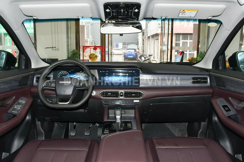 Khoang cabin của Jetour X90 Plus 2025 với màn hình kép 12,3 inch. Vô-lăng 3 chấu đa chức năng, tích hợp các nút bấm. Bảng điều khiển chức năng cảm ứng, cơ cấu chuyển số điện tử và các nút điều khiển dạng núm xoay. Dàn âm thanh 6 loa, 4 cổng USB (2 ở hàng ghế trước và 2 ở hàng ghế thứ 2).