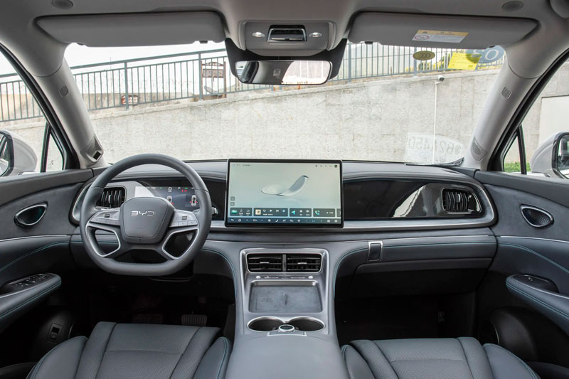 Không chỉ mạnh về công nghệ, nội thất của BYD Sealion 07 DM-i cũng cực kỳ sang chảnh và hiện đại với màn hình hiển thị thông tin kính lái AR 26 inch và màn hình cảm ứng trung tâm xoay được 15,6 inch, tích hợp hệ thống giải trí DiLink 100. Không gian bên trong còn có ghế trước massage 10 điểm, tủ lạnh hai vùng có thể làm lạnh đến -6°C hoặc sưởi tới 50°C và dàn âm thanh Dynaudio với 12 loa cực chất. Toàn bộ khoang nội thất được thiết kế theo concept “Glacier World” - chủ đề mang hơi hướng hiện đại, thanh lịch nhưng vẫn trẻ trung đúng chất BYD.