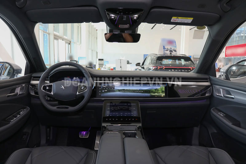 Điểm nhấn trong khoang lái là bộ điều khiển trung tâm sử dụng chip Snapdragon 8155, giúp tăng cường hiệu suất xử lý và mang lại trải nghiệm mượt mà hơn. Ngoài ra, xe còn có hàng loạt tính năng tiện ích như màn hình hiển thị áp suất lốp, hỗ trợ đỗ xe tự động, hỗ trợ khởi hành ngang dốc và đổ đèo, radar đỗ xe trước và sau, camera 360 độ, hỗ trợ lái xe cấp độ L2, cửa sau chỉnh điện, khởi động không cần chìa khóa, đèn pha LED ma trận tự động, cửa sổ trời toàn cảnh, cần gạt nước tự động và hệ thống điều hòa bơm nhiệt với cửa gió cho hàng ghế sau.