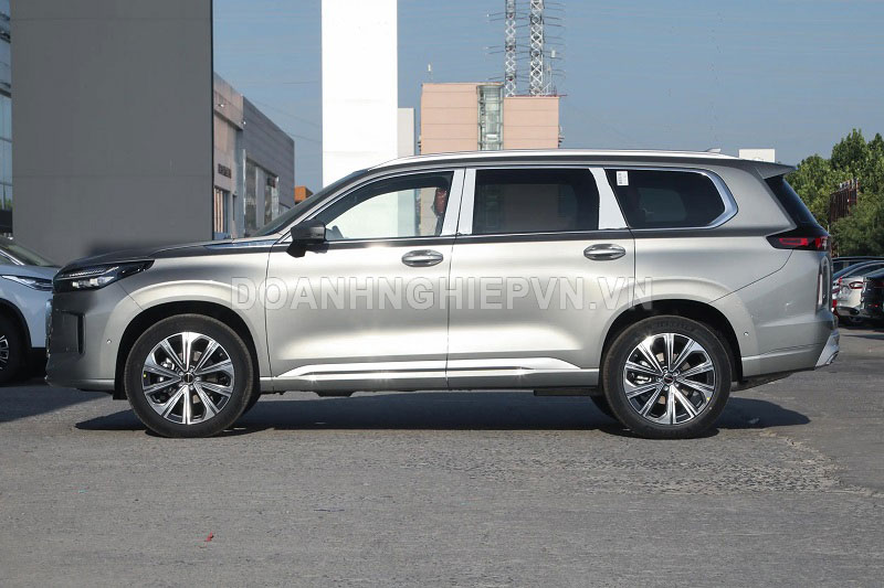 Dọc thân xe, Exeed VX C-DM sử dụng nhiều chi tiết mạ crôm cao cấp, kết hợp với đường mái phẳng và đường viền thân xe thấp, mang lại cảm giác giống một chiếc wagon hơn là SUV truyền thống.