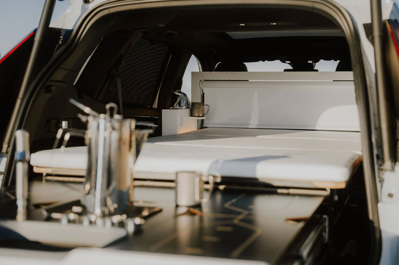 Honda CR-V Dream Pod được thiết kế theo phong cách xe cắm trại hiện đại, với điểm nhấn chính nằm ở không gian bên trong – nơi mà cốp xe dung tích 617 lít được “độ” lại bằng hệ thống Nestboard 650 đến từ hãng đồ cắm trại nổi tiếng EGOE. Khi gập hàng ghế sau, một chiếc nệm đôi sẽ tự bung ra, đủ rộng rãi cho hai người lớn ngủ ngon lành ngay trong xe, không cần lều trại lỉnh kỉnh.