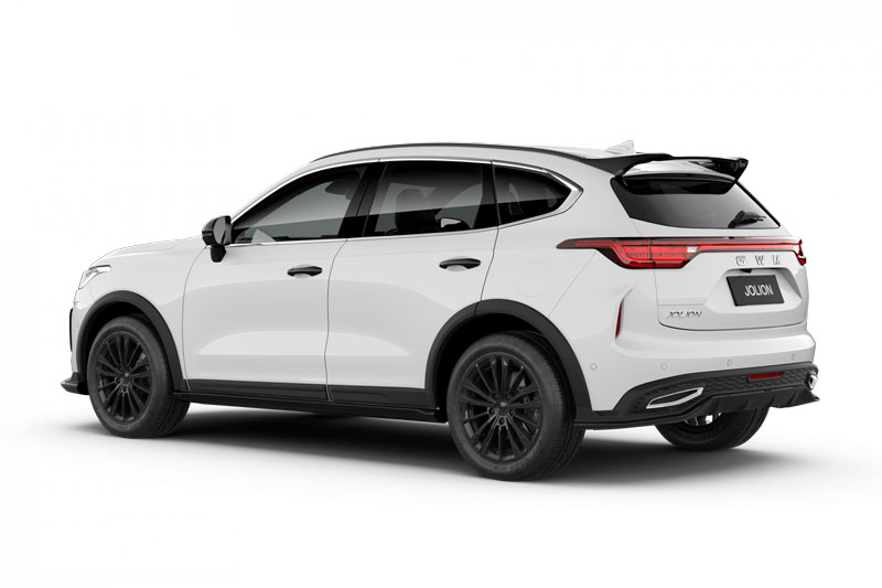 Về ngoại thất, Haval Jolion gây ấn tượng với lưới tản nhiệt mạ crôm theo phong cách "bầu trời sao", nối liền cụm đèn pha LED thấu kính. Xe được trang bị dải đèn LED định vị ban ngày ôm quanh cụm đèn pha và kéo dài xuống cản trước, tạo điểm nhấn nổi bật. Phía sau, Jolion sở hữu cụm đèn hậu LED cỡ lớn kết hợp với cánh gió mui kiểu tai mèo thể thao. Phiên bản Pro sử dụng mâm hợp kim 17 inch, trong khi phiên bản Ultra được trang bị mâm 18 inch cao cấp hơn.