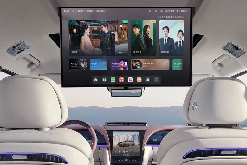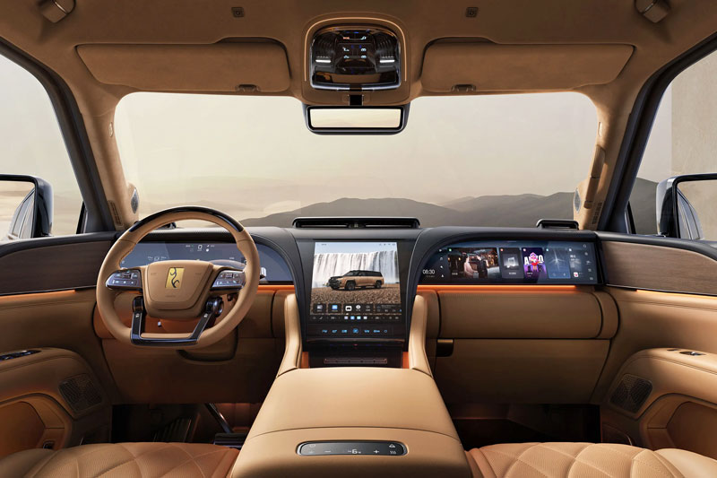 Khoang cabin của U8L Dingshi Edition được hoàn thiện với hai tùy chọn phối màu tím xám hoặc đen nâu kết hợp chất liệu gỗ nguyên khối cao cấp. Trung tâm điều khiển được trang bị cụm màn hình hiện đại gồm bảng đồng hồ kỹ thuật số 23,6 inch, màn hình trung tâm 12,8 inch và màn hình giải trí 23,6 inch dành cho hành khách.