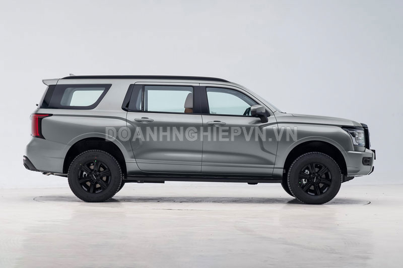 Từ góc nhìn ngang, viền cửa sổ, vành xe, giá nóc cũng được phủ sơn đen, tạo sự đồng bộ với tổng thể xe. Phía sau, xe sở hữu viền đen khói chạy xuyên suốt, đi kèm với cặp ống xả kép đầy chất thể thao. Đáng chú ý, chiều cao thân xe đã được tăng thêm 25mm, giúp khoảng sáng gầm đạt 225mm, đồng thời góc tiếp cận và góc thoát lần lượt là 26 độ và 24 độ, đảm bảo khả năng off-road ấn tượng hơn.