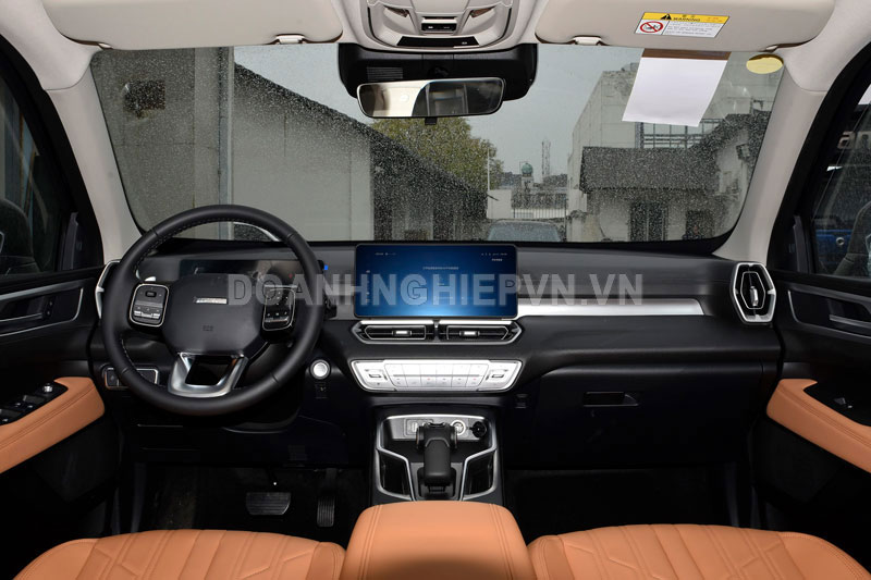 Bước vào khoang lái, Haval H5 2025 vẫn giữ phong cách thiết kế quen thuộc với vô lăng ba chấu thể thao. Bảng đồng hồ kết hợp giữa màn hình kỹ thuật số và màn LCD 3,5 inch, trong khi màn hình trung tâm 12,3 inch hỗ trợ điều khiển dễ dàng. Hãng cũng giữ lại nhiều nút bấm vật lý trên bảng điều khiển trung tâm, giúp người lái thao tác nhanh hơn mà không cần phụ thuộc quá nhiều vào màn hình cảm ứng.