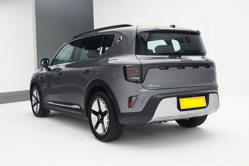 Lưới tản nhiệt phía trước được tinh chỉnh với bề mặt phẳng mờ tạo cảm giác kín đáo và tinh tế hơn so với bản điện thuần túy. Smart #5 EHD mang đến năm tùy chọn màu sơn gồm vàng cát lún, trắng hạt, bạc cyber, xám cangyan và xanh starry. Phía sau, xe được trang bị cánh gió mui tích hợp camera lùi, đèn hậu LED viên nang đồng bộ với đèn pha, cùng cản sau hai tông màu và hệ thống ống xả ẩn, tạo nên thiết kế liền mạch, tinh tế và hiện đại.