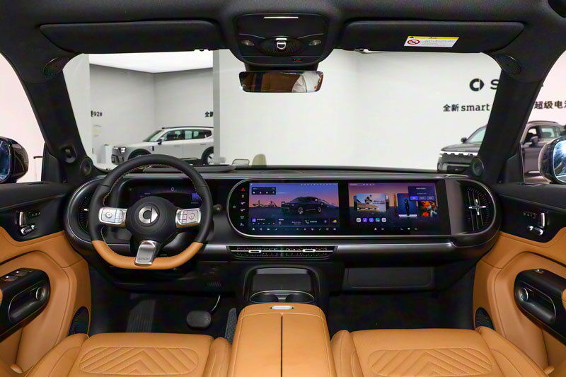 Bên trong, Smart #5 EHD Super Hybrid duy trì triết lý “viên nang thời gian” với khoang lái công nghệ cao. Xe được trang bị bảng đồng hồ LCD 10,3 inch, màn hình AR-HUD 25,6 inch, và hai màn hình trung tâm AMOLED 13 inch dạng viên nang. Hệ thống hiển thị sử dụng công nghệ OLED hai lớp Tandem, kết hợp chip đồ họa AMD V2000 và bộ xử lý Unreal Engine 3A, mang lại hình ảnh mượt mà và sống động. Hệ thống điều khiển giọng nói thông minh Doubao AI giúp người lái tương tác dễ dàng hơn. Ngoài ra, nội thất có hai tùy chọn màu sắc nâu mật ong nhạt và đen Obsidian sang trọng.