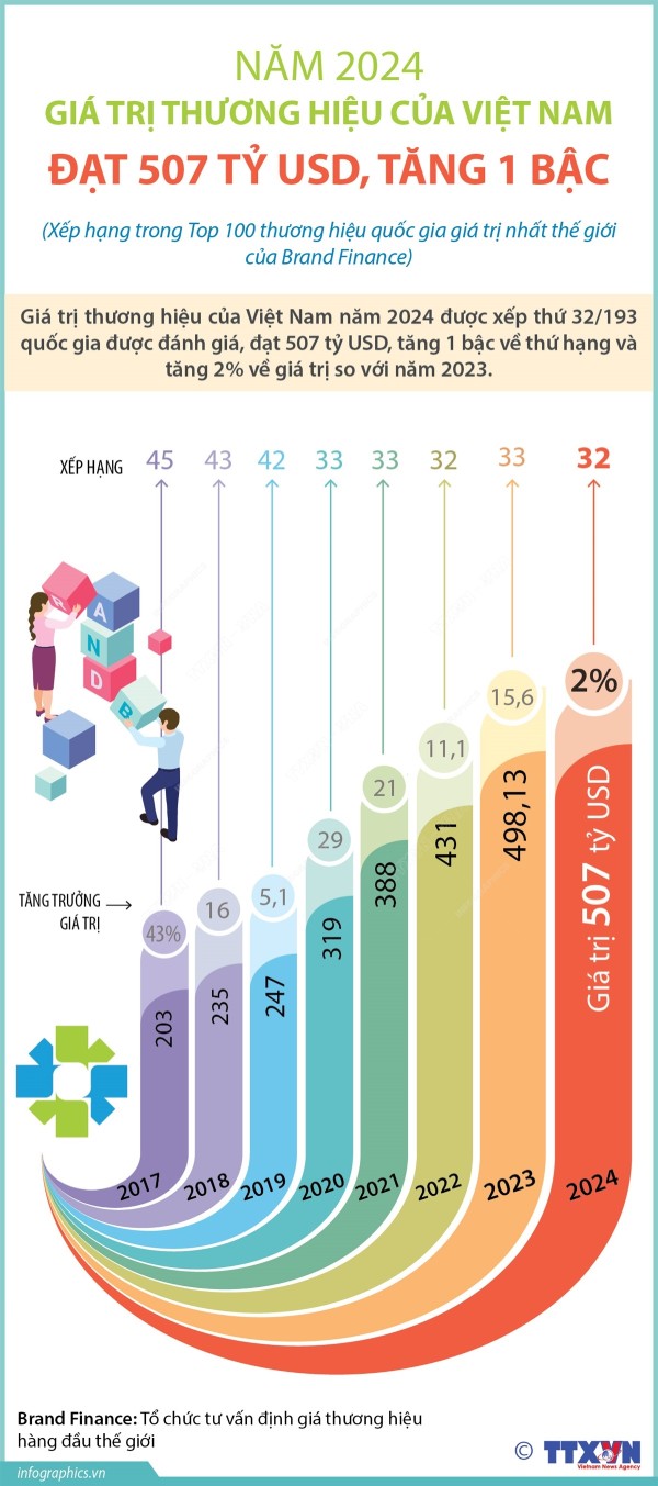 Thương hiệu quốc gia Việt Nam đạt 507 tỷ USD, xếp thứ 32 thế giới.
